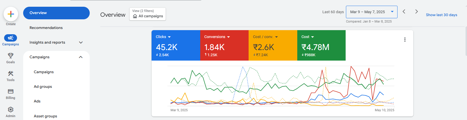 Large ad spend (~₹47.8 lakh in 60 days) that needed better lead quality.